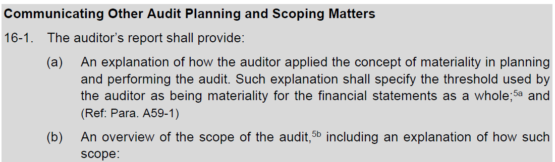 - Hay tres apartados claramente diferenciados: materialidad (materiality), materialidad de ejecución de trabajo (performance materality) y el umbral de las incorrecciones claramente insignificantes (reporting threshold).